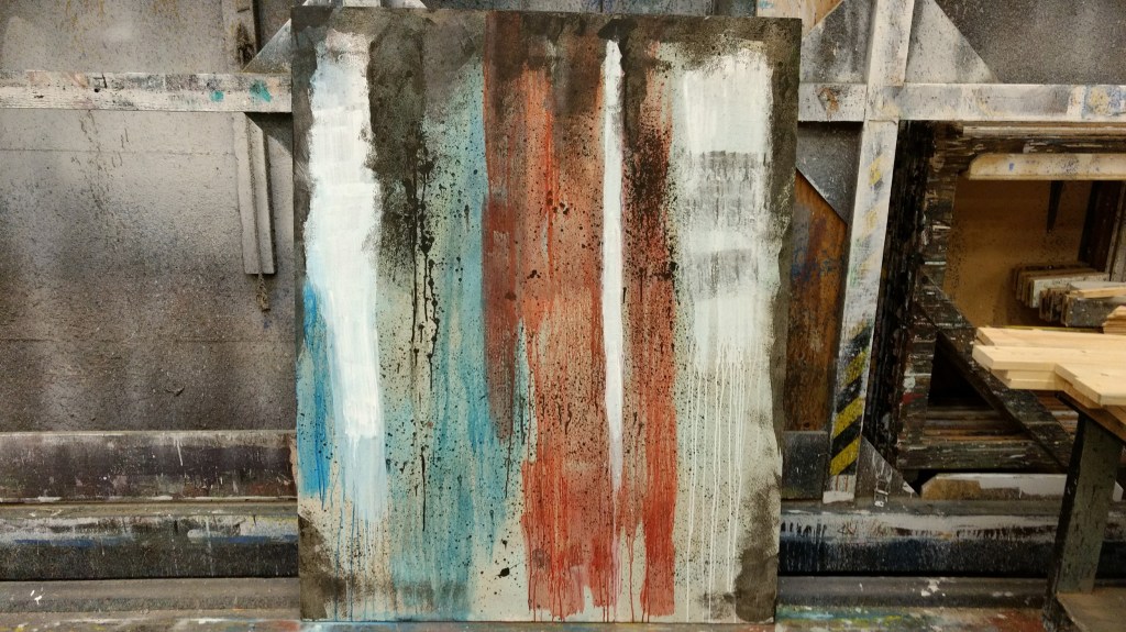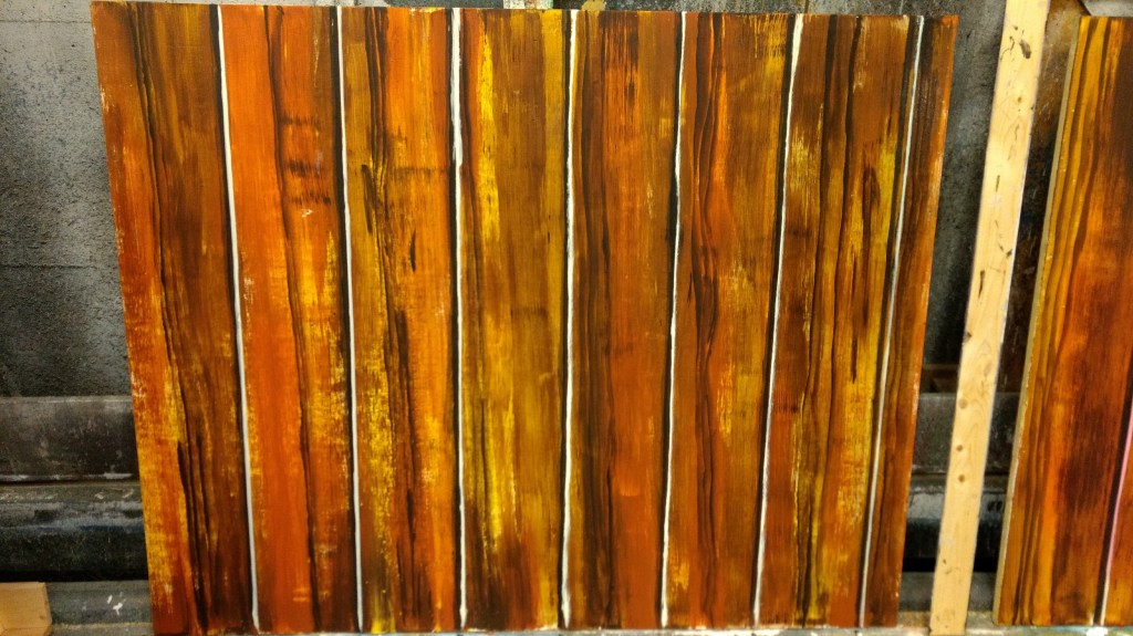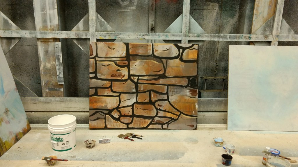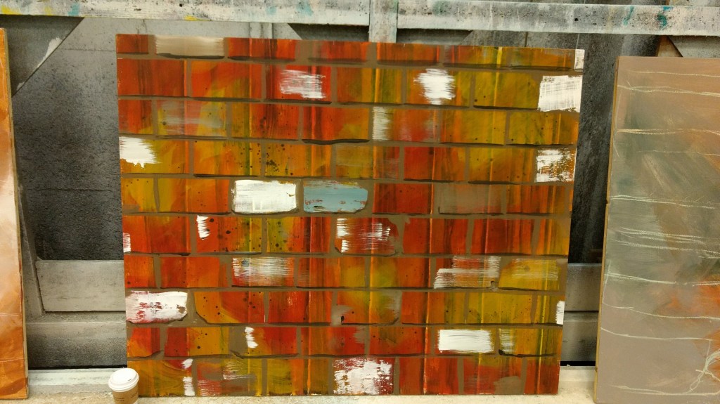 Various textures and images for an introductory course in Scenic Painting at the University of British Columbia, Vancouver, BC. All painted using scenic acrylics on plywood-faced flat from reference images.